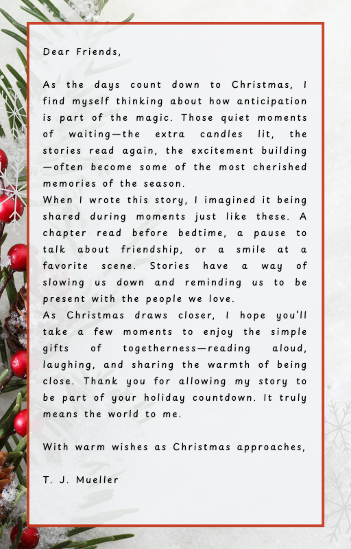 Christmastime has always held a special place in my heart –a season filled with warmth, stories, and quiet moments shared with the ones we love. This book was written with that spirit in mind. I wanted to create a story that families could enjoy together, snuggled under blankets, wrapped in the glow of holiday lights.